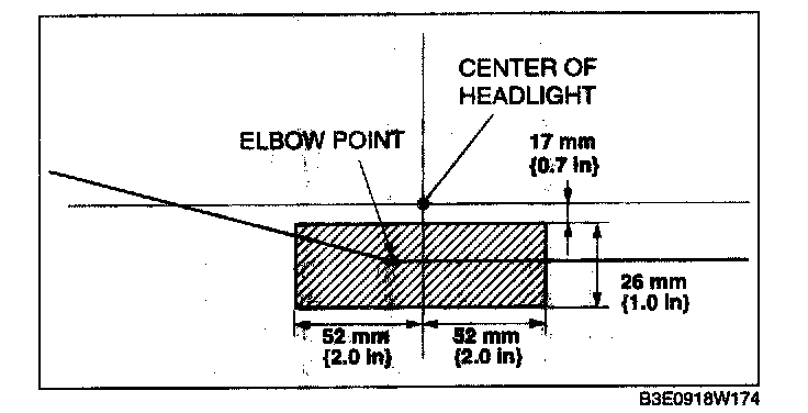 11. Turn the adjusting screws to adjust the headlight so that the elbow point is in the shaded area shown in the figure.