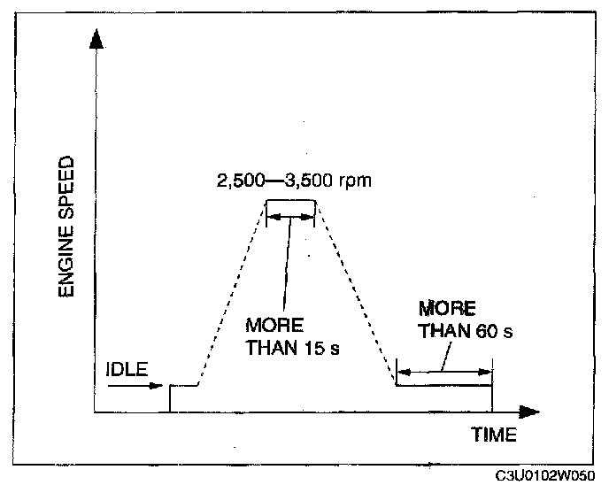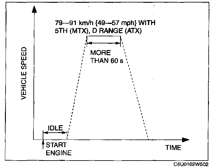6. Drive the vehicle at an engine speed of 65 - 80 km/h {40 - 50 mph} for more than 5 min.