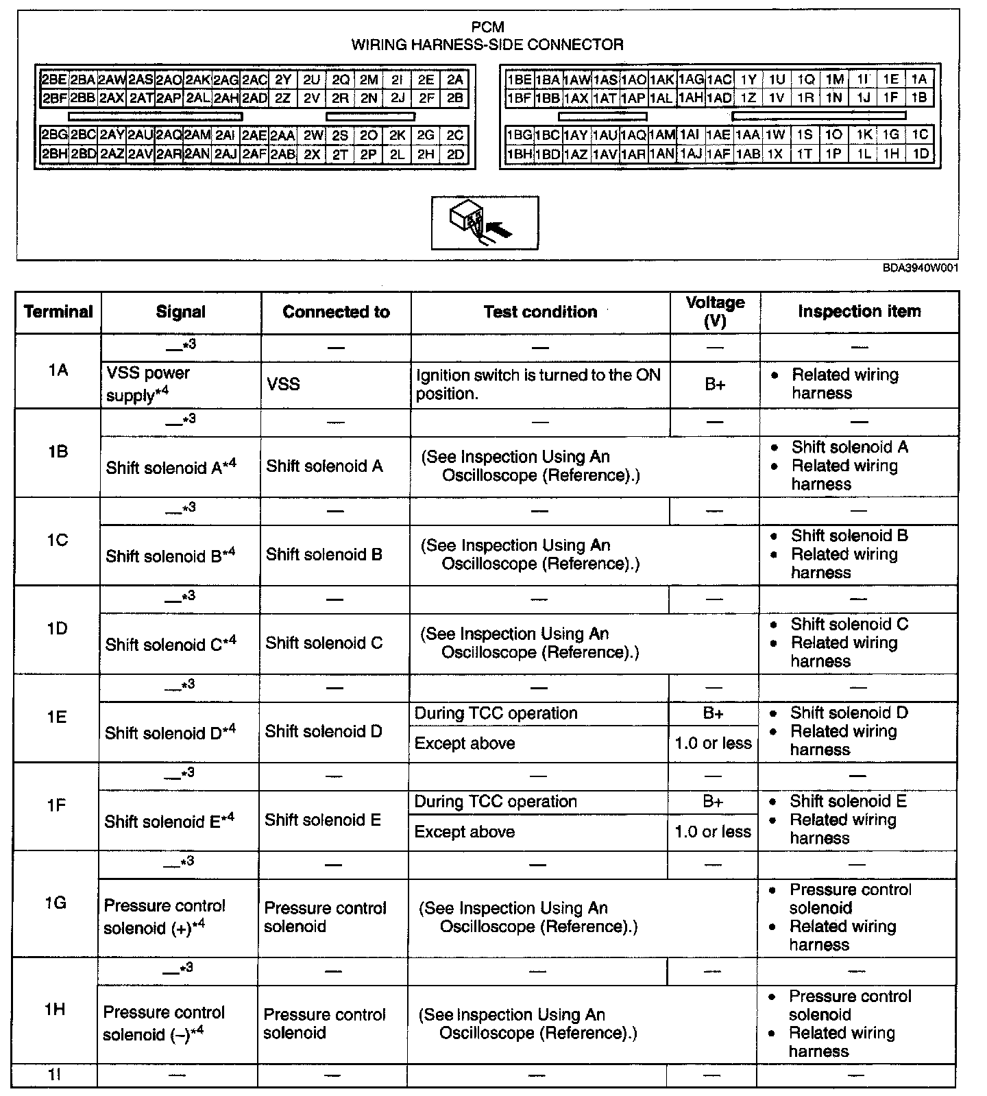 PCM Terminal Voltage Table (Reference) - Terminals (1A - AI):