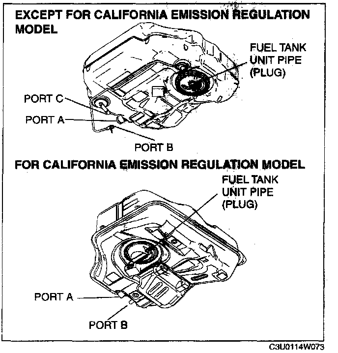 FUEL TANK INSPECTIONNOTE: The two rollover valves built into the fuel tank and check valves (two-way) built into the rollover valves are inspected in this inspection.