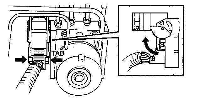 1. Pull the connector cover up in the direction of the arrow while pressing the tab of the connector cover.