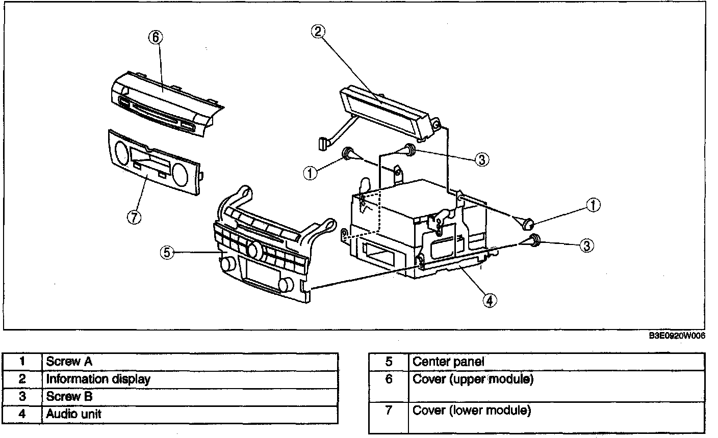 CAUTION: Before disassembling the center panel module, spread a cloth on the floor to put the disassembled parts on. This protects the surface of the panel from scratches or dirt.