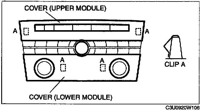 1. Pull the cover (upper or lower module) outward, detach clip A from the center panel, and then remove the cover.
