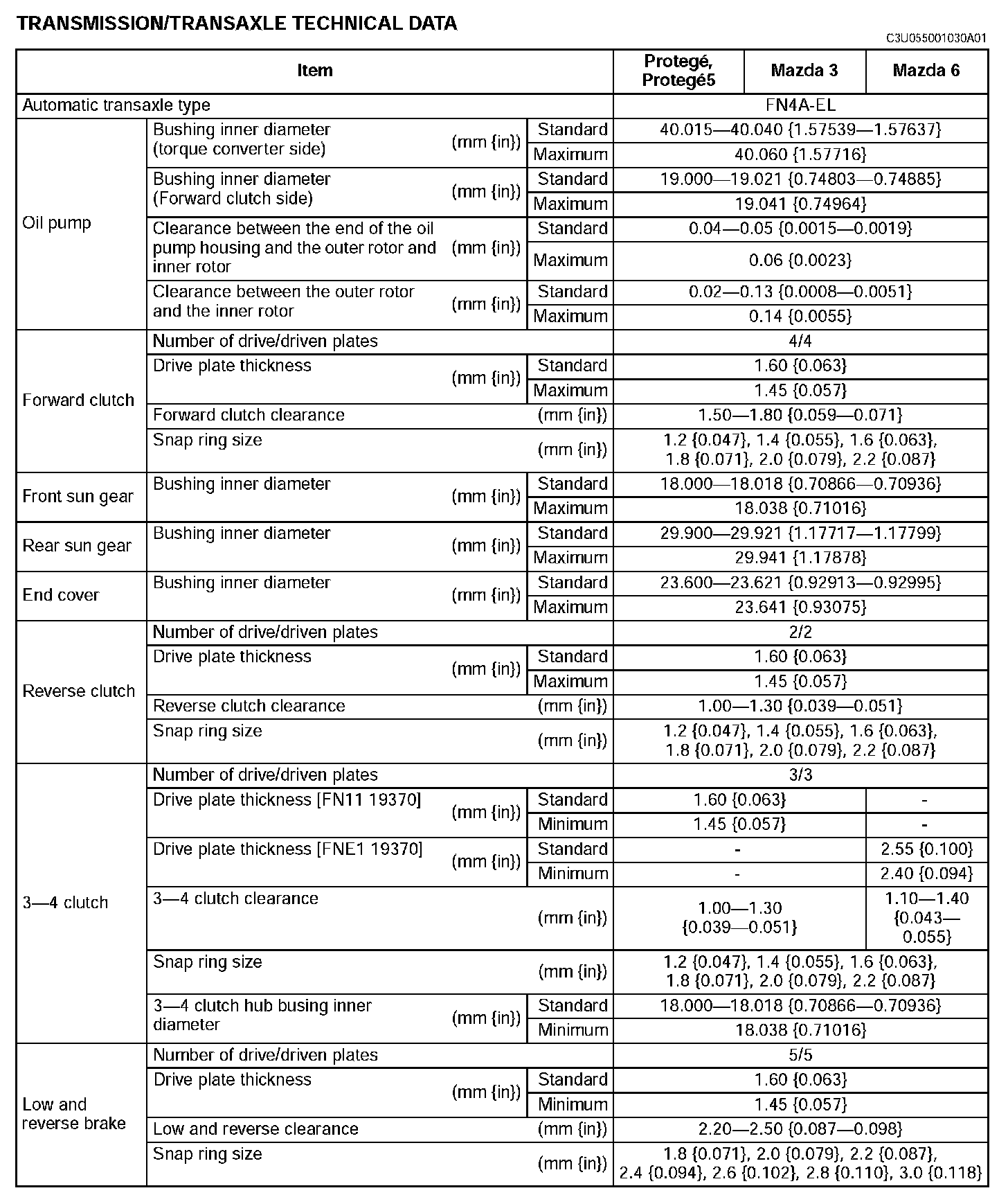 Transmission/Transaxle Technical Data (Part 4):