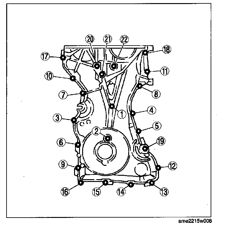 Install the engine front cover bolts in the order as shown in the figure.