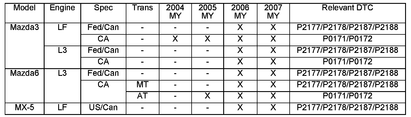 2. When the vehicle experienced an MIL coming on with DTC P2177, P2178, P2187, P2188, P0171, and/or P0172 stored in memory.