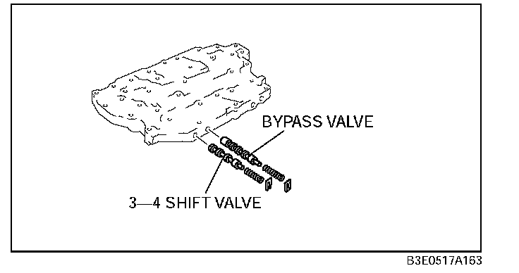 2. Install the 3- 4 shift valve, 3- 4 shift valve spring, and retainer.