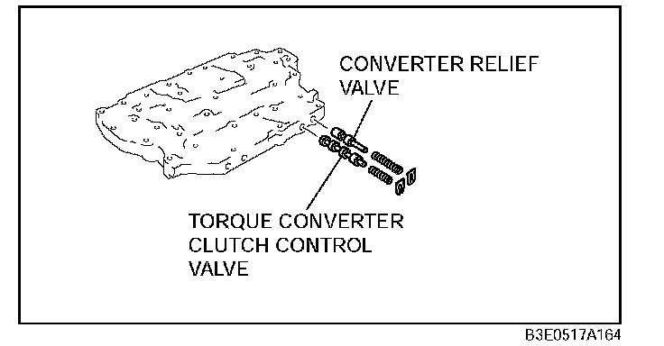 4. Install the torque converter clutch control valve, torque converter clutch control valve spring, and retainer.