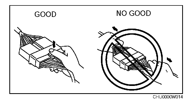 ^ Inspect the terminals of waterproof connectors from the connector side since they cannot be accessed from the wiring harness side.