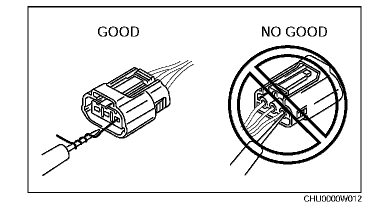 Caution: To prevent damage to the terminal, wrap a thin wire around the tester probe before inserting into terminal.