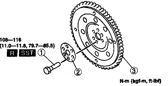 Tightening torque 108 - 116 Nm (111.0 - 11.8 kgf-m, 79.7 - 85.5 ft. lbs)
