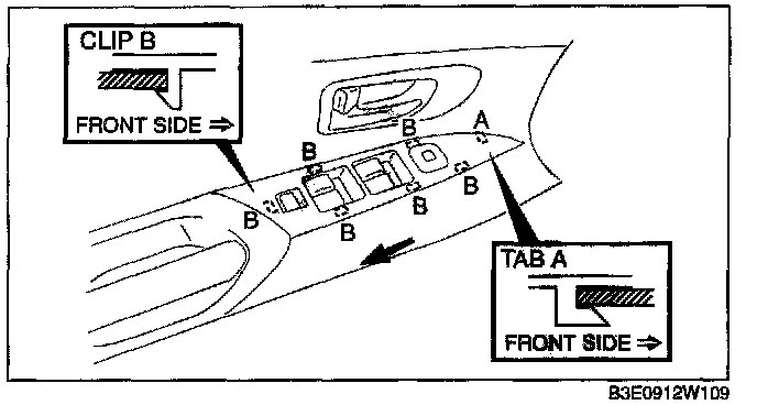 POWER WINDOW MAIN SWITCH REMOVAL/INSTALLATION