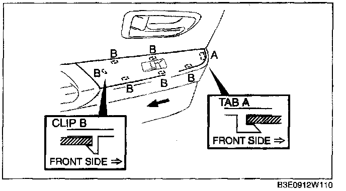2. Remove the clips B using a flathead screwdriver wrapped with protective tape.