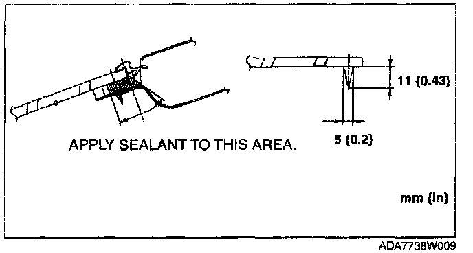 2. If the sealant has come off completely in any one place, apply some primer after degreasing, and allow it to dry for approx. 30 min. Then apply a 2 mm {0.08 in} thickness of sealant.