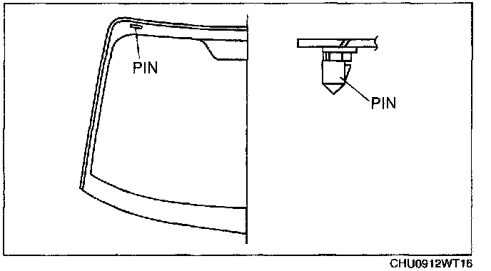 7. Mark the seating positions of the pins and remove the pins from the windshield.
