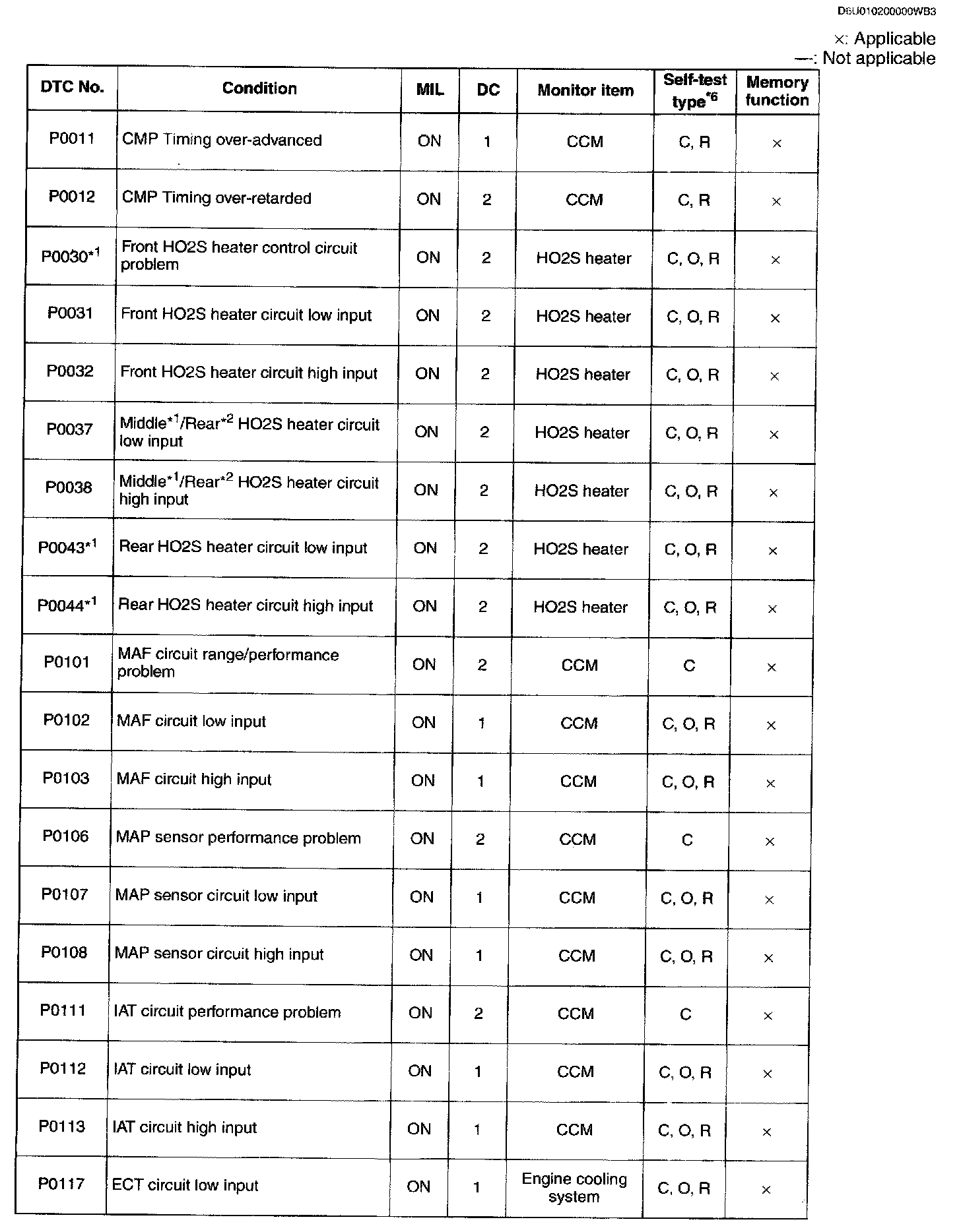 DTC P0011 - P0117: