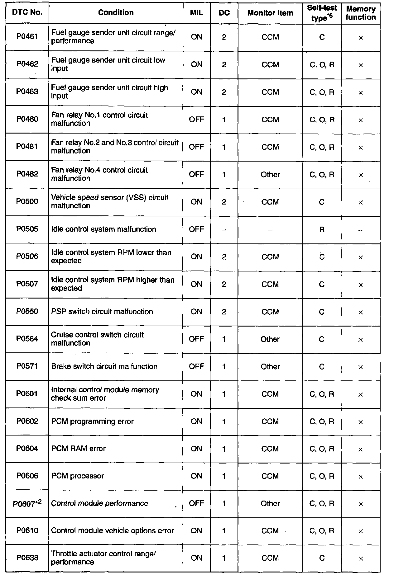 DTC P0461 - P0638: