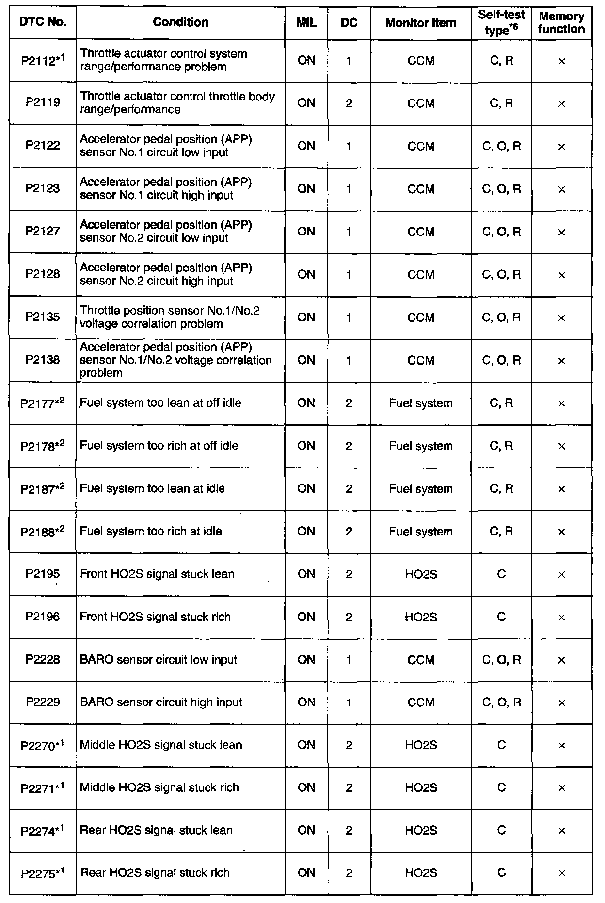 DTC P2112 - P2275: