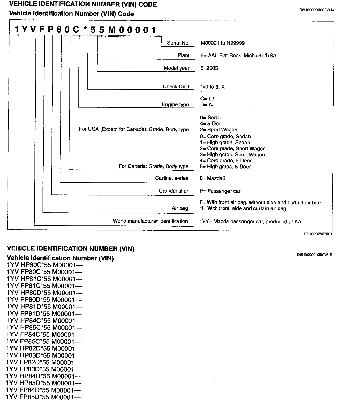 Vehicle Identification Number (VIN) Code: