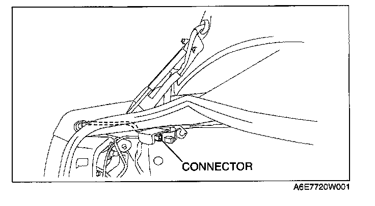2. Disconnect the trunk lid harness connector, and pull the trunk lid harness out from the cabin.