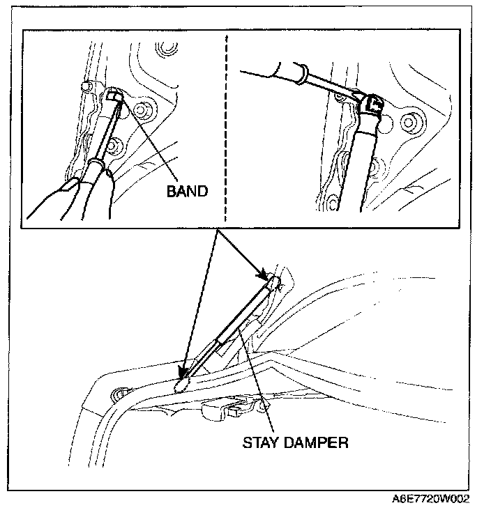 TRUNK LID REMOVAL/INSTALLATIONWARNING: Removing the stay damper without supporting the trunk lid can be dangerous. The trunk lid may fall and injure you. Open the trunk lid fully and support it before removing the stay damper.