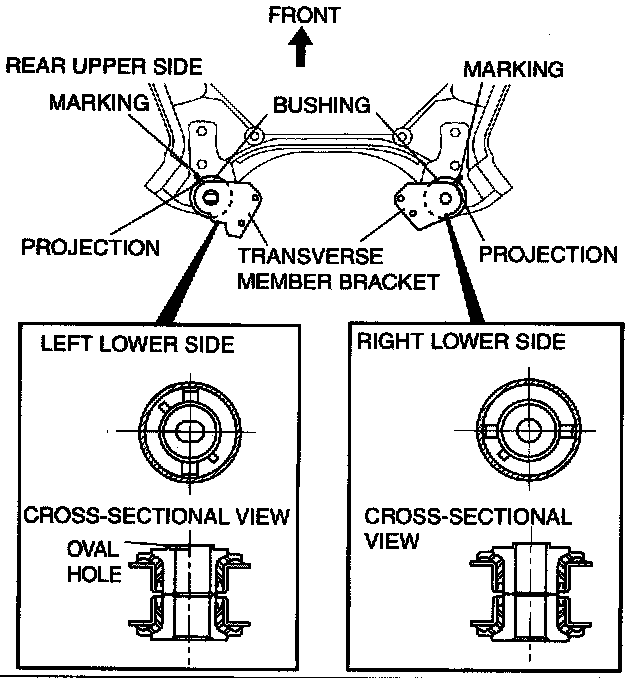 1. Mark the crossmember as shown in the figure (rear upper side only).