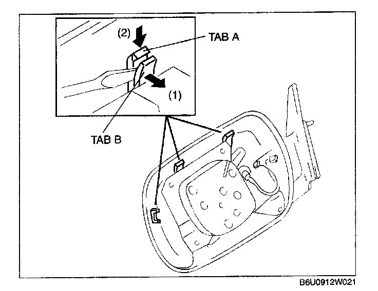1. Pull off the tab A with a screwdriver and press the tab B downward.