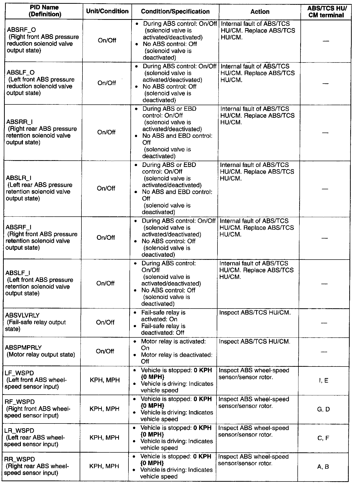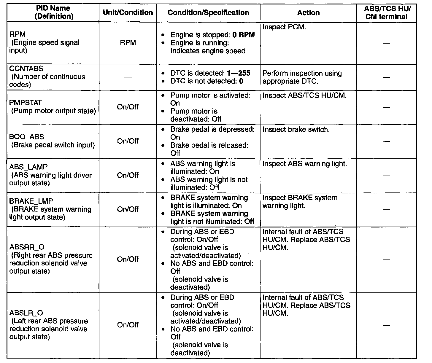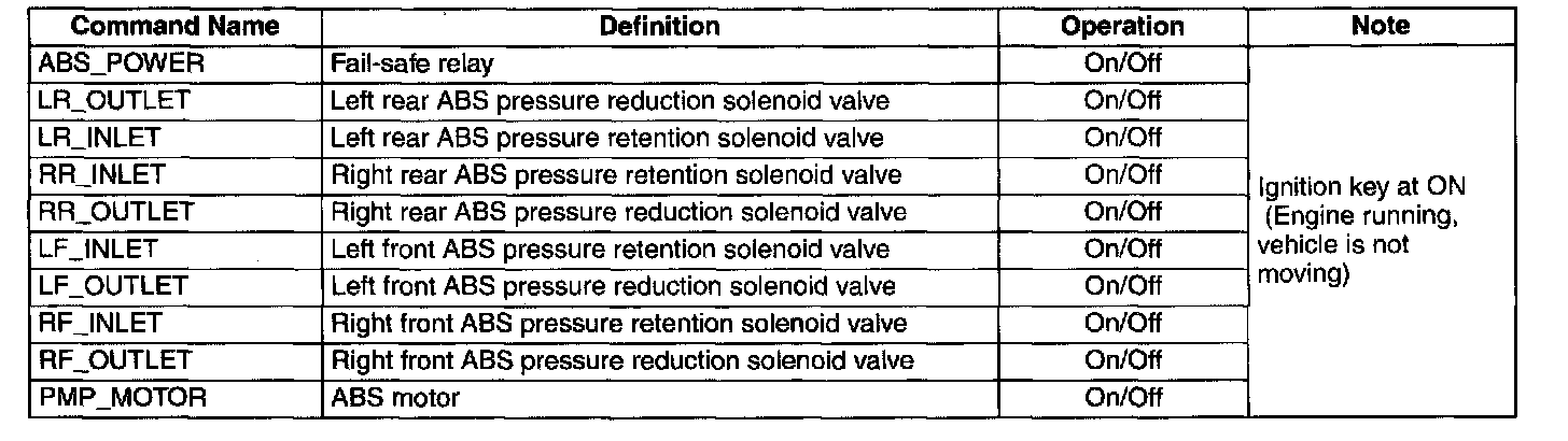 Active Command Modes ProcedureNote: When driving, the ABS motor and each valve automatically turn ABS-POWER on, and then each command on. ABS-POWER regulates the power supply for the ABS motor and 8 valves.