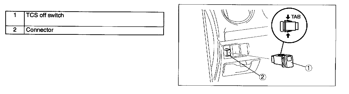 1. Insert your hand from the lower side of the dashboard and squeeze the tabs of the TCS off switch.