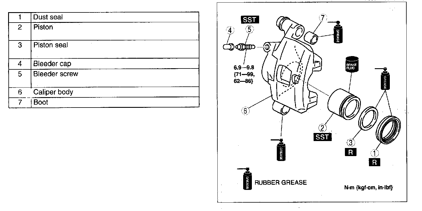 CALIPER (FRONT) DISASSEMBLY/ASSEMBLY1. Disassemble in the order indicated in the table.