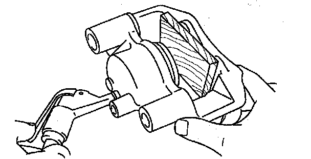 1. Place a piece of wood in the caliper, then blow compressed air through the hole to force the piston out of the caliper.