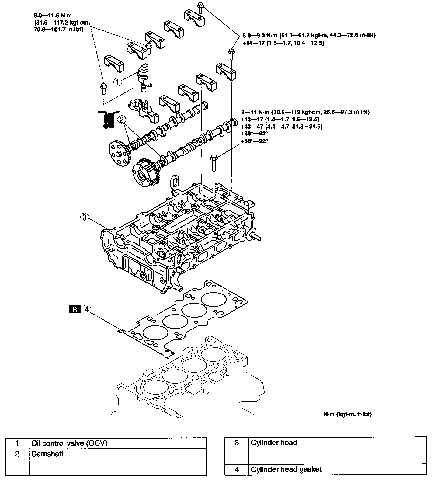 - The cylinder head and the camshaft caps are numbered to be reassembled in their original position correctly. When removed, keep the caps with the cylinder head they were removed from. Do not mix the caps.