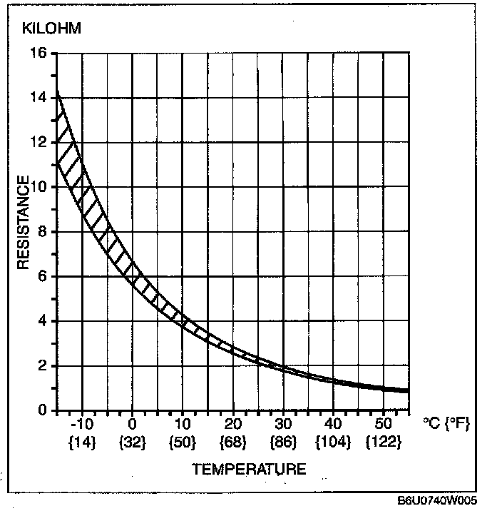 - If the resistance is not as shown in the graph, replace the passenger compartment temperature sensor.