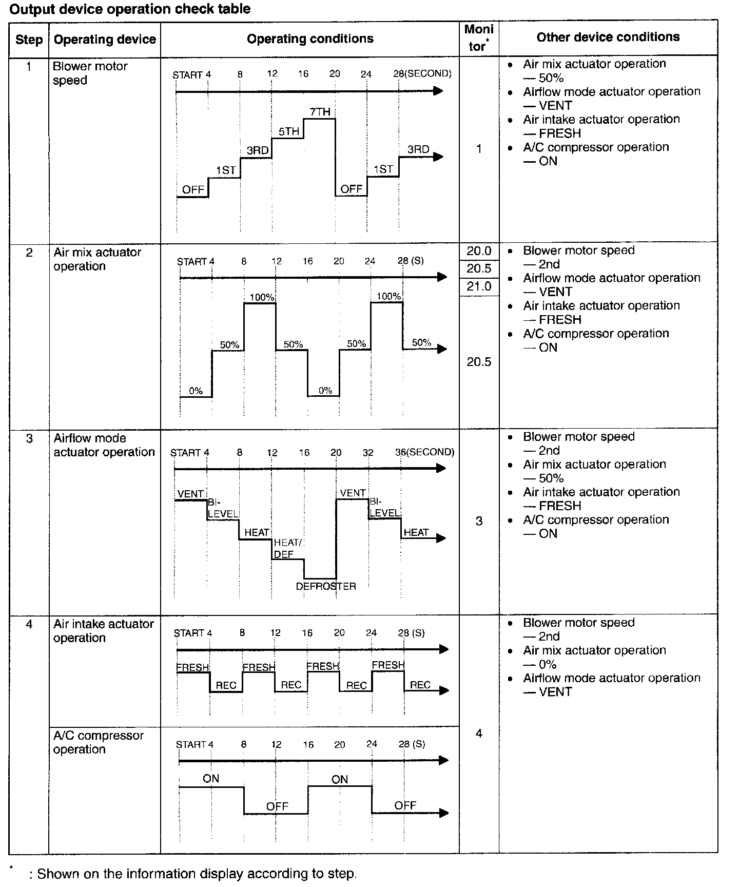 6. Verify the operation of each output device when changing steps by pressing the REC/FRESH switch, and referring to the output device operation check chart.