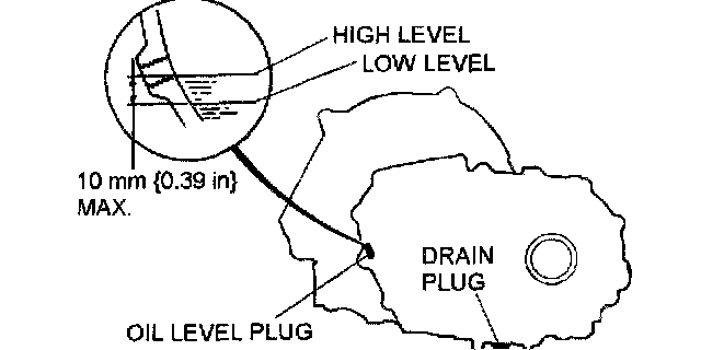 4. Remove the oil level plug with washer and add the specified amount and type of oil through the oil level plug hole until the level reaches the bottom of the oil level plug hole.