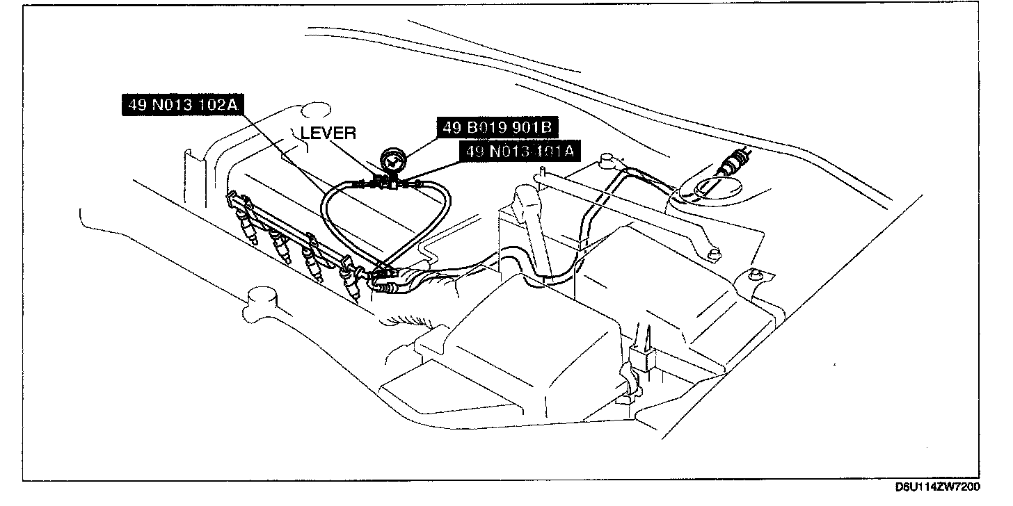 FUEL LINE PRESSURE INSPECTIONWARNING: FUEL LINE SPILLS AND LEAKAGE ARE DANGEROUS. FUEL CAN IGNITE AND CAUSE SERIOUS INJURIES OR DEATH. FUEL CAN ALSO IRRITATE SKIN AND EYES. TO PREVENT THIS, ALWAYS COMPLETE THE "BEFORE REPAIR PROCEDURE".