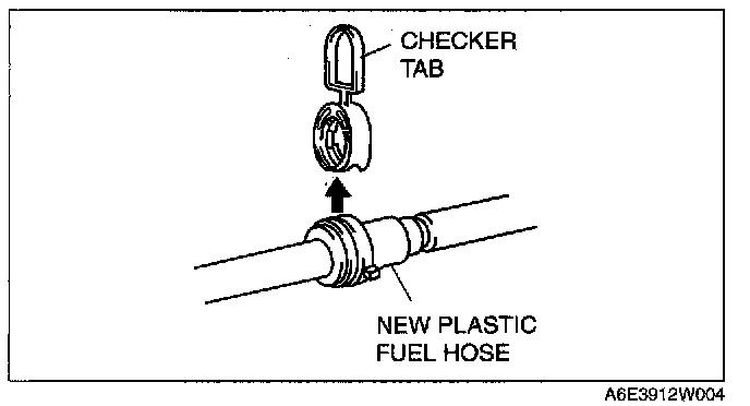 NOTE: A checker tab is integrated with quick release connector for new plastic fuel hoses. The checker tab will be released from the quick release connector after it is completely engaged with the fuel pipe.