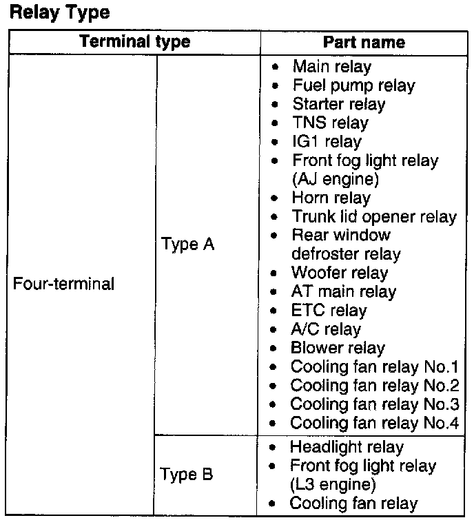 2. Inspect for continuity between the relay terminals using an ohmmeter.