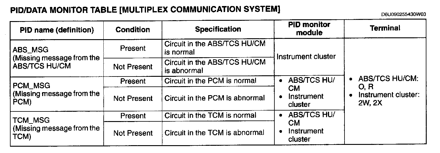PID/DATA Monitor Table [Multiplex Communication System]: