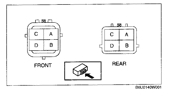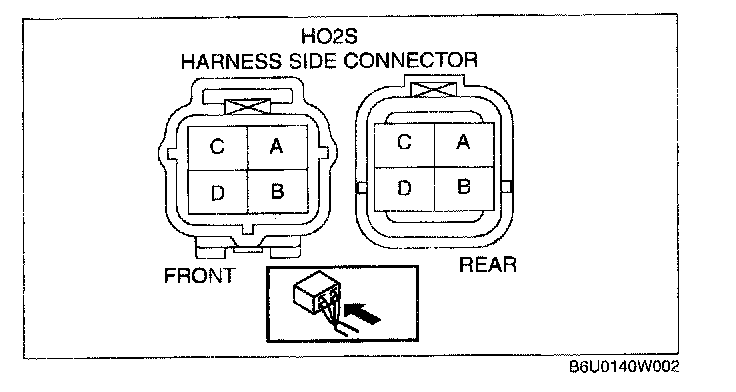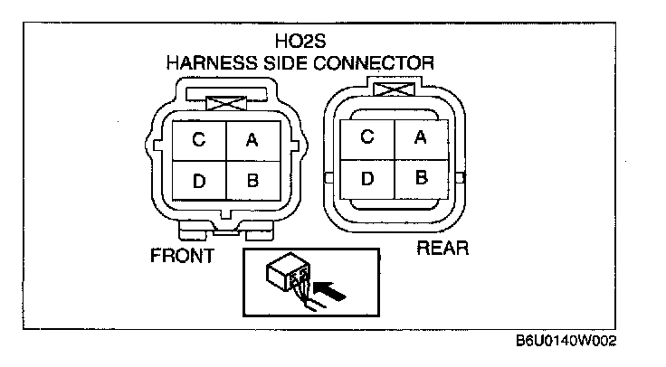 2. Measure the resistance between the front/rear HO2S terminals C and D.