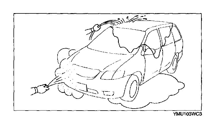 5. Spray water onto the vehicle or run it through a car wash.