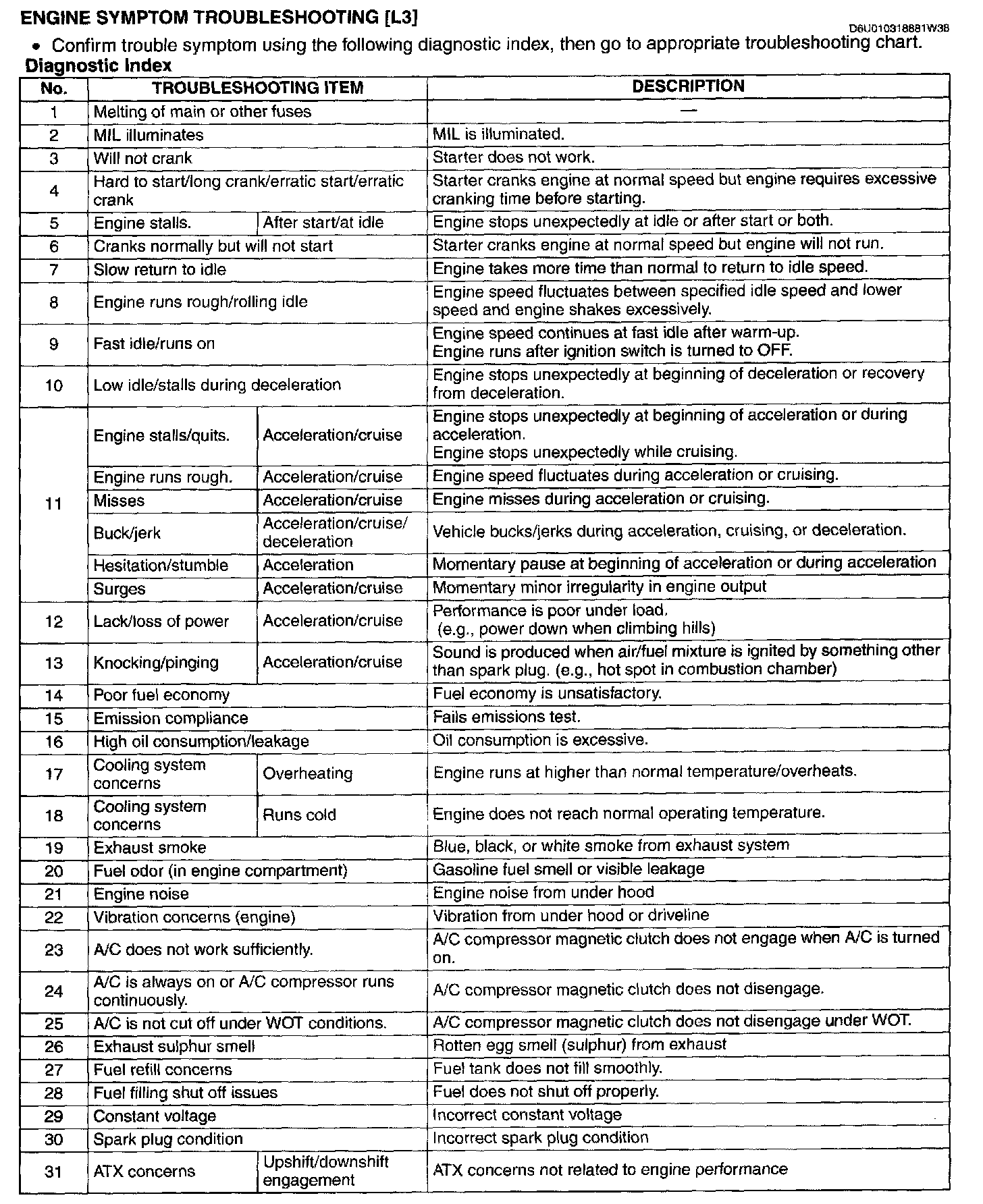 Symptom Troubleshooting Chart - Engine Driveability