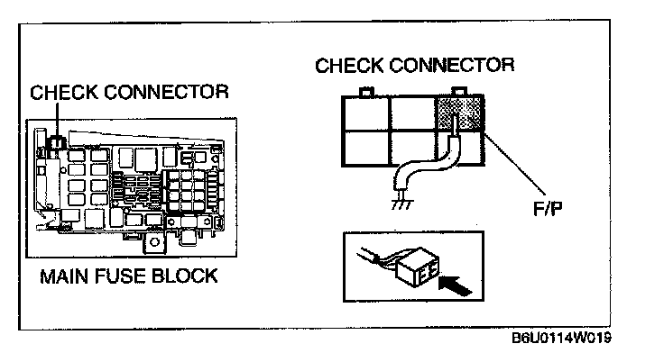 10. Short the check connector terminal F/P to body GND using a jumper wire.