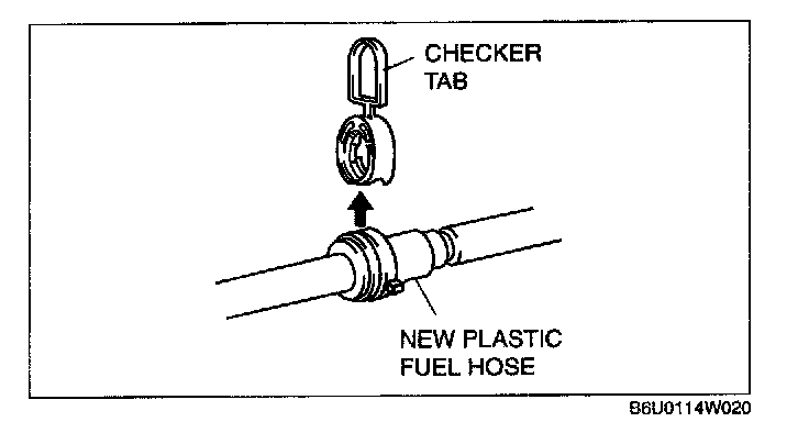 NOTE: A checker tab is integrated with the quick release connector for new plastic fuel hoses. The checker tab will be released from the quick release connector after it is completely engaged with the fuel pipe.