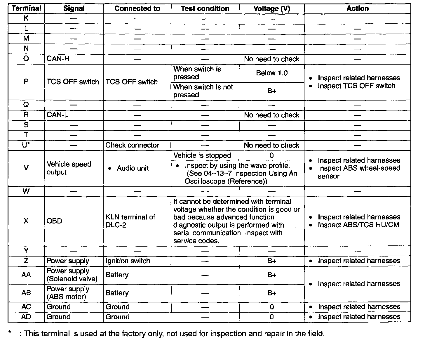 Terminal Voltage Table (Reference)