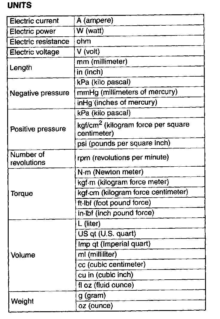 - All numerical values in this manual are based on SI units. Numbers shown in conventional units are converted from these values.
