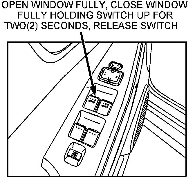 4. Pull window switch up to fully close door window; hold switch up for two (2) seconds; release switch.
