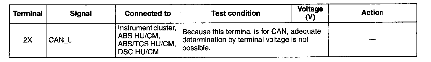 ^ If any incorrect voltage is detected, inspect the related system(s), wiring harnesses and connector(s) referring to the Action column in the terminal voltage table.