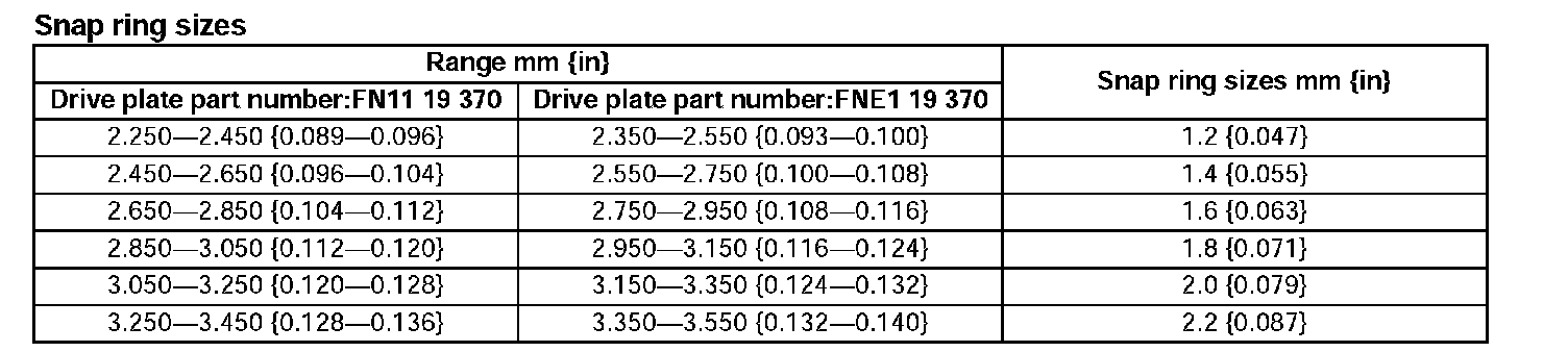 9) Install the selected snap ring and perform steps (2) to (7) again. Verify that the calculated value satisfies the clearance specification.