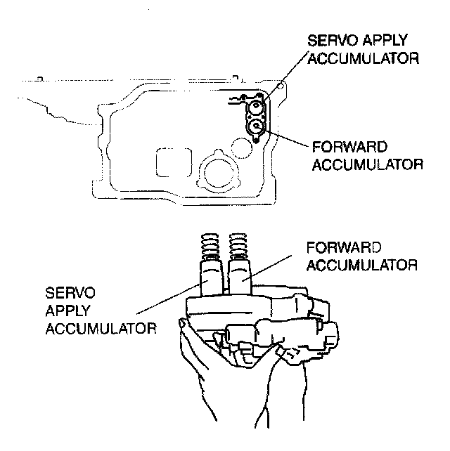 1. Install the accumulator springs and accumulators into the transaxle case.
